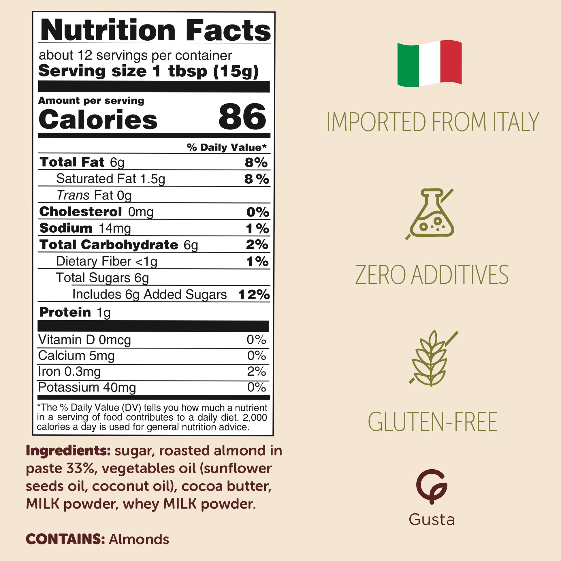 Authentic Italian Craftsmanship - Made in Italy using carefully selected almonds, this smooth almond cream delivers a naturally rich and velvety taste that reflects traditional Italian quality.