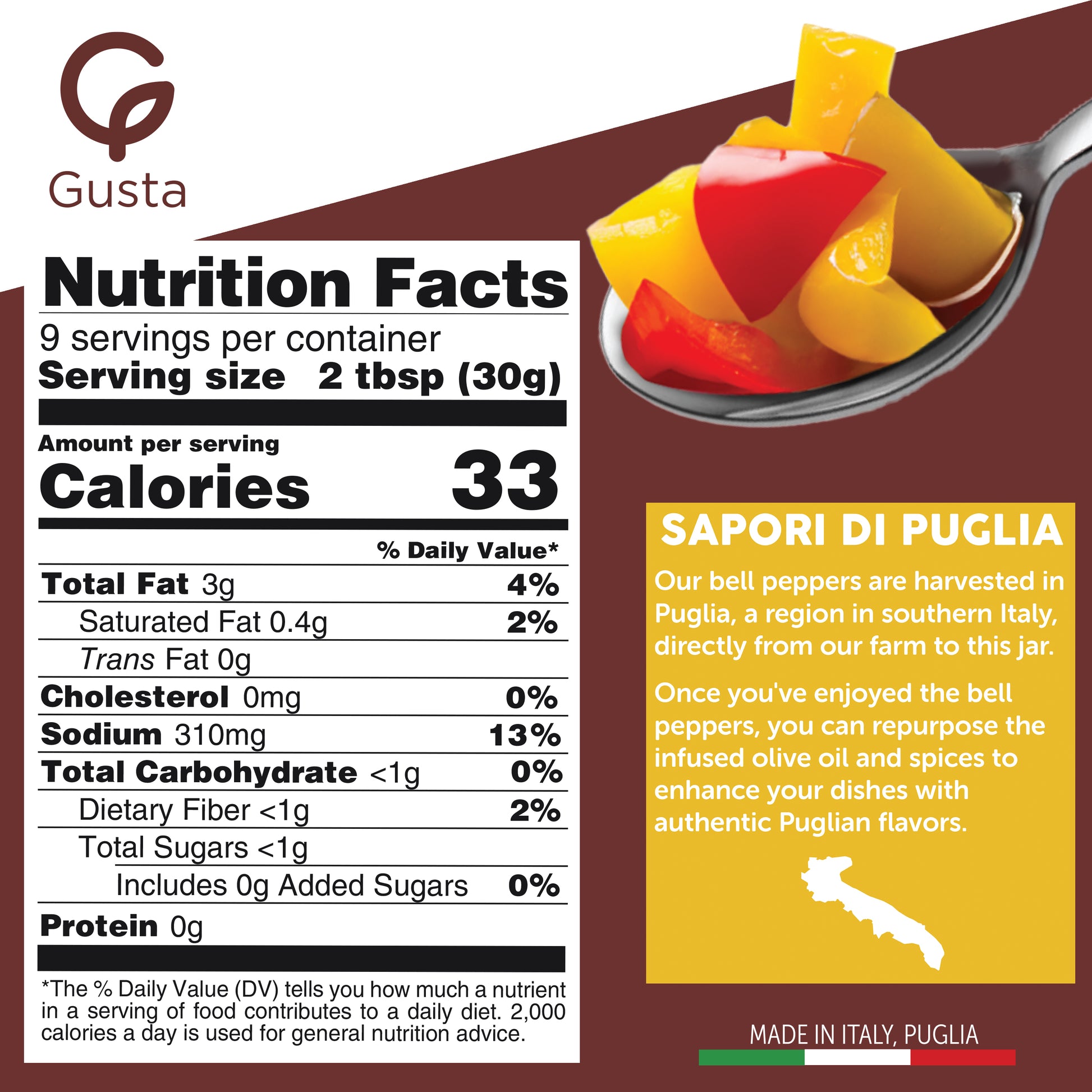 - Premium Quality: Experience the exceptional taste of Gusta Pepper Compote, made with the finest peppers and preserved in high-quality extra virgin olive oil. Sourced from Puglia, Italy, for unmatched flavor and quality.