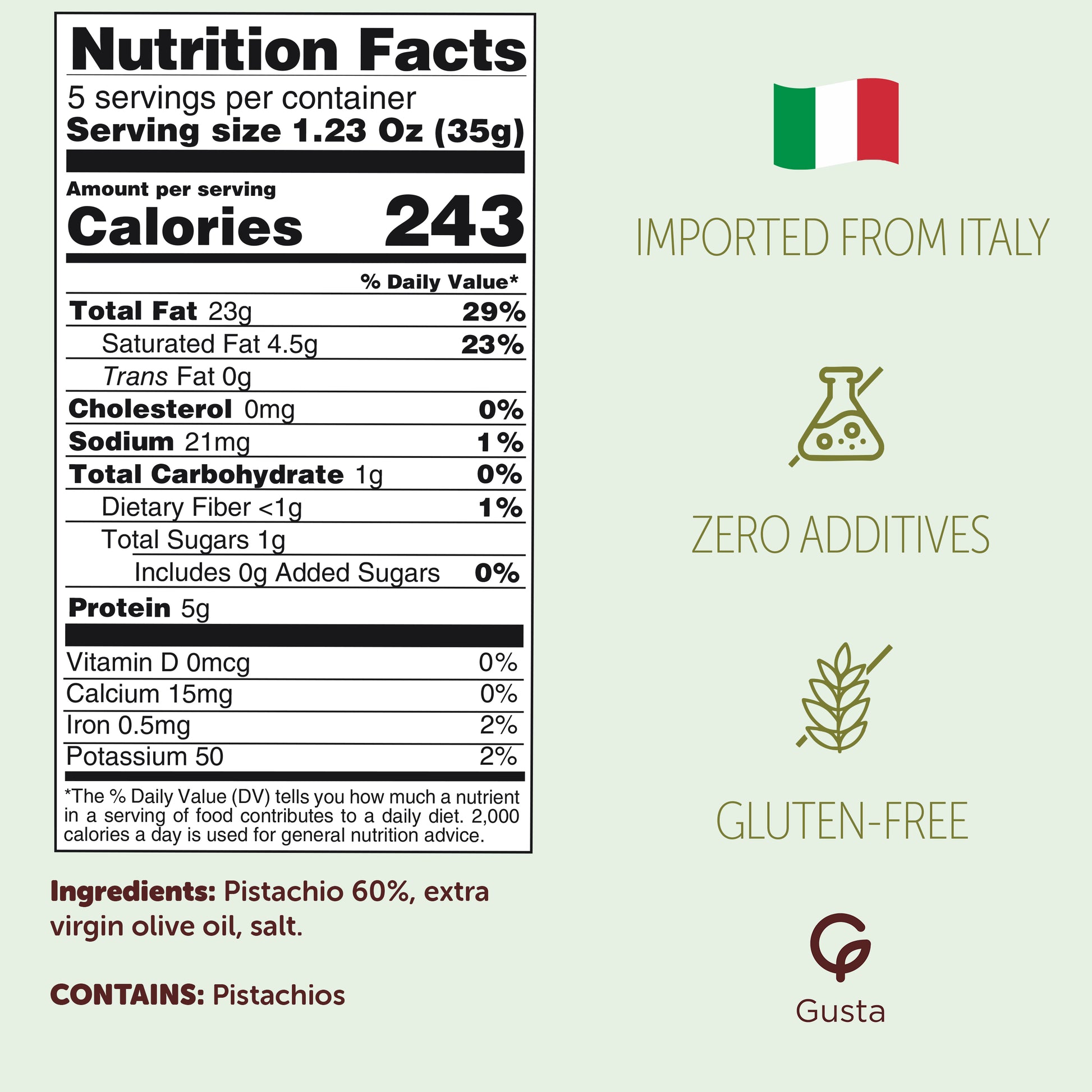 ONLY 3 INGREDIENTS - Made simply with pistachios, extra virgin olive oil, and salt. No preservatives or fillers, ensuring a pure, authentic Italian taste straight from the source.