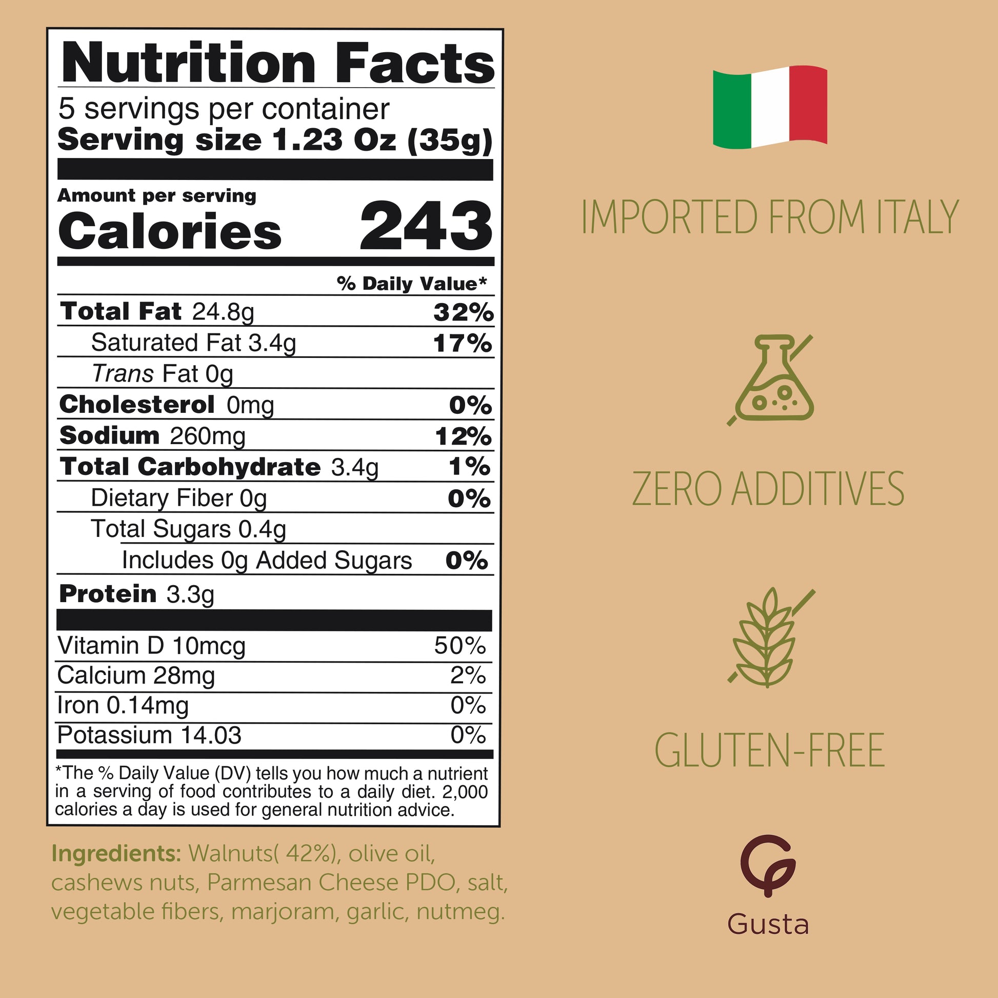 Convenient & Ready to Serve: Skip the prep without compromising on quality. Gusta's walnut sauce is a gourmet experience in a jar - quick to use, satisfying to taste.