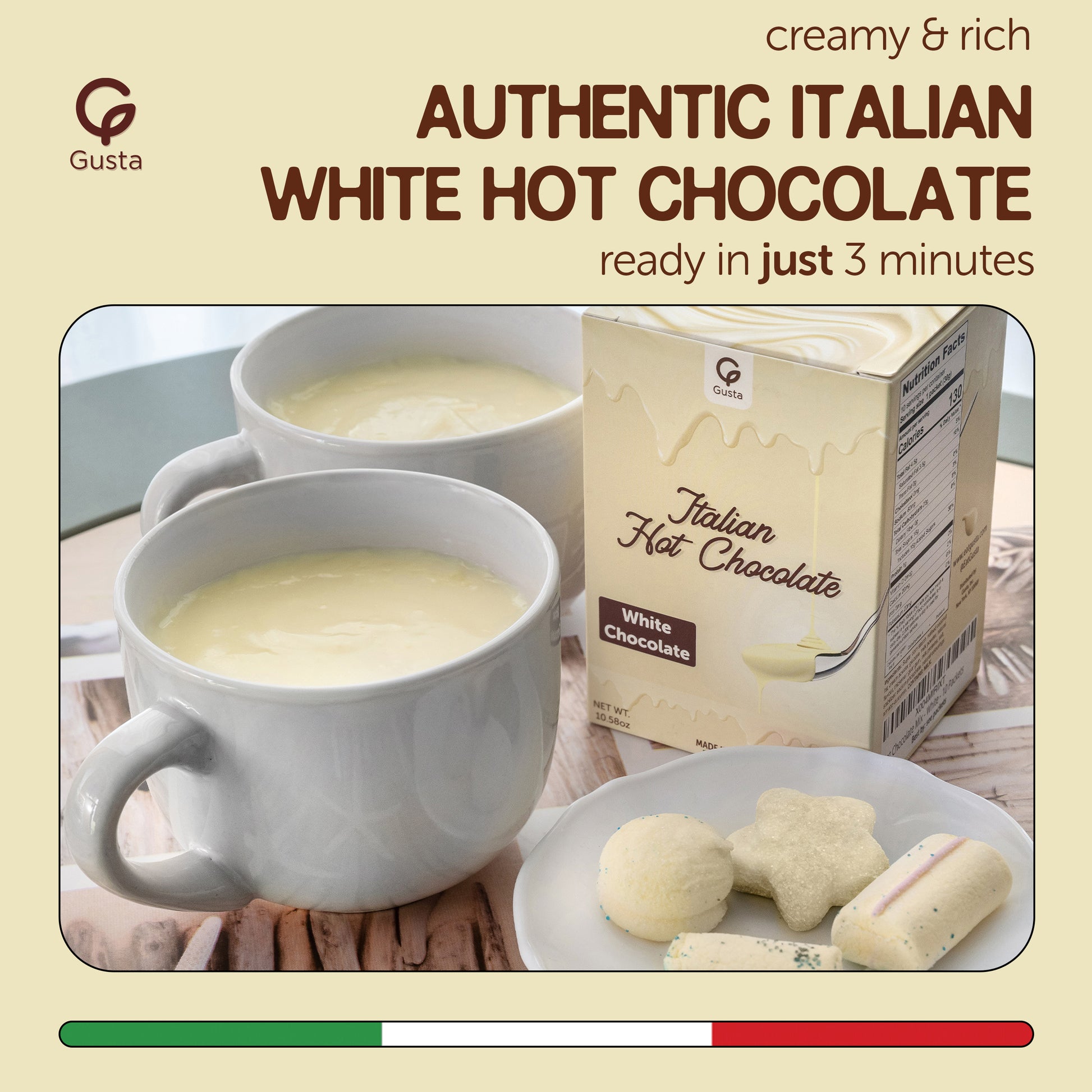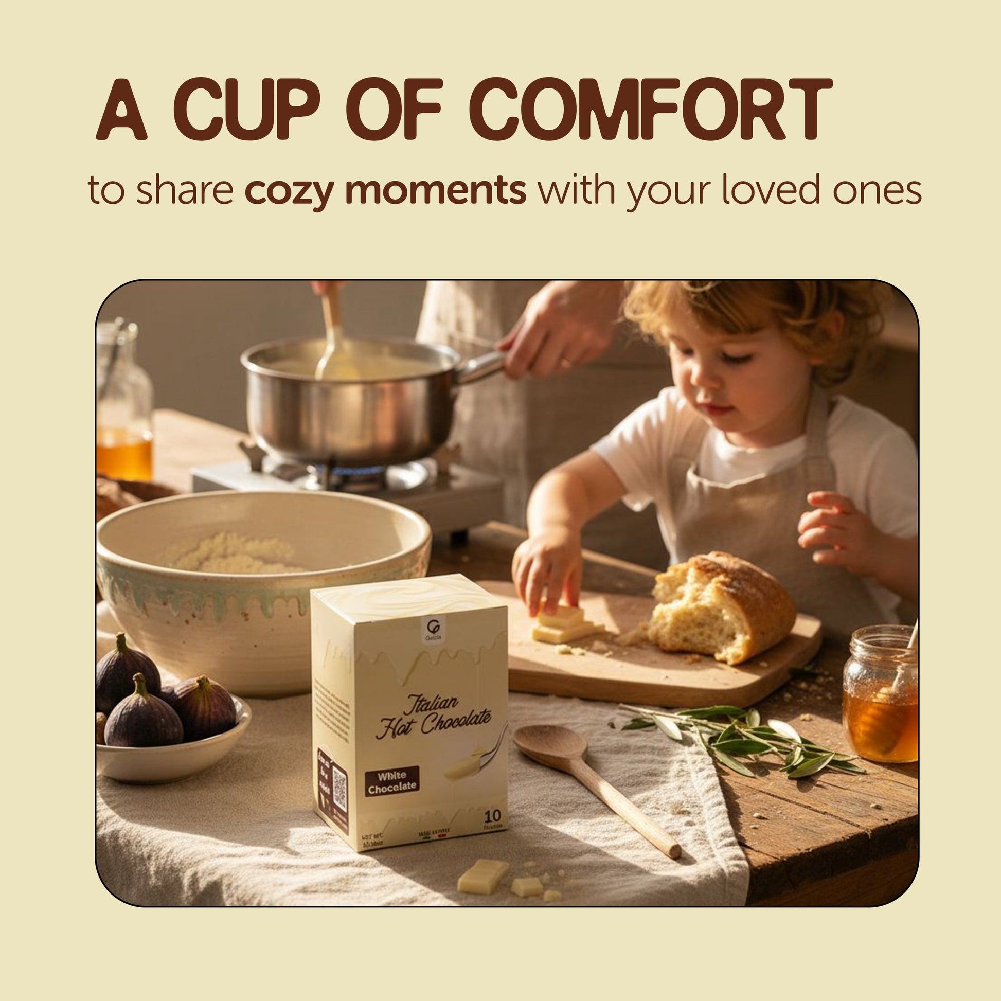 Smooth & Indulgent – Rich, creamy with a delicate sweetness that feels like a dessert in a cup. A lighter, playful option compared to classic or dark hot chocolate.